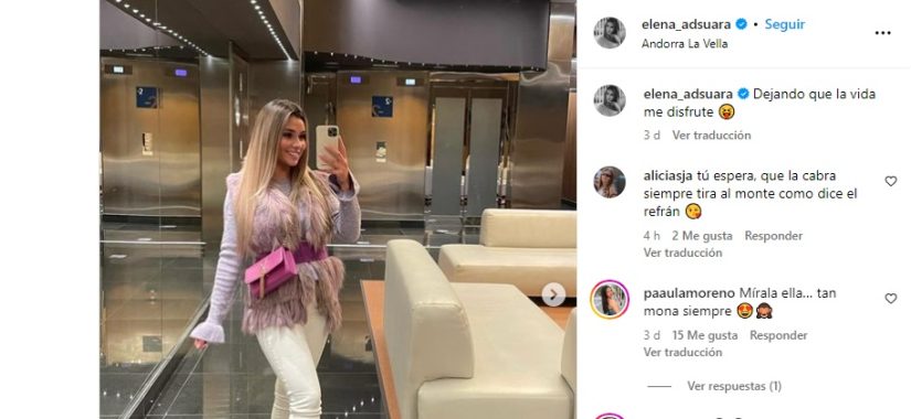 Es tiempo de dar un giro a lo sucedido y continuar, por eso, Elena Adsuara vive su vida como si nada de ese mal trago le afectase. «Dejando que la vida me disfrute», escribió la influencer en su cuenta de Instagram acompañada de unas fotos que hizo en su último viaje a la nieve, a Andorra. En las mismas, se la ve radiante, muy sonriente y disfrutando de un tiempo de descanso para despejar la mente, relajarse y por supuesto, disfrutar.