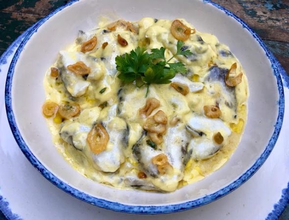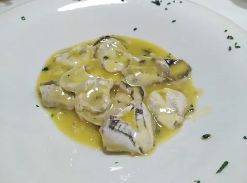 - Una vez que las kokotxas estén cocidas y la salsa pil pil tenga una textura espesa y sedosa, retira la sartén del fuego.