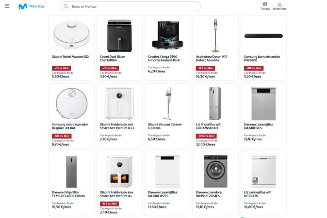 Movistar no solo comercializa conectividad, contenidos televisivos, y dispositivos relacionados con los mismos. Para luchar a brazo partido por mantener y conseguir clientes en los contratos Premium, los más completos y de precios más altos, también vende aspiradoras, lavavajillas, frigoríficos, freidoras y paneles solares, es decir, electrodomésticos grandes y pequeños, que todos necesitamos en casa, en un catálogo al que cada vez se incorporan más marcas. La posibilidad está abierta para los clientes de contratos miMovistar y Fusión, y es una estrategia más para que sus clientes de más valor se piensen dos veces irse y contratar con sus competidores más cercanos, como el recientemente formado Masorange y Vodafone.