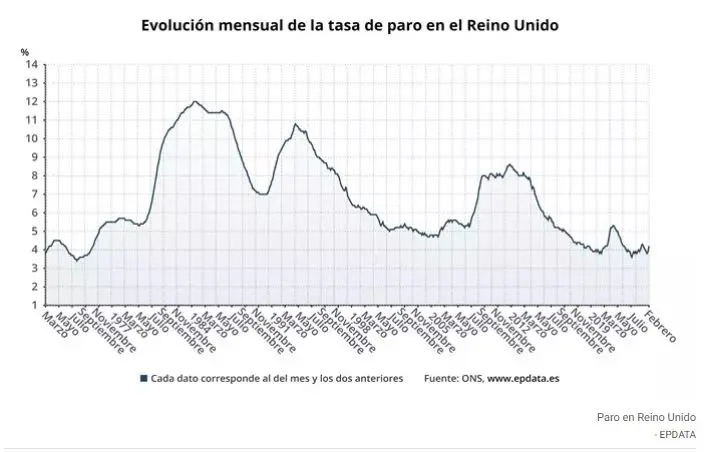 La tasa de paro del Reino Unido se situó en los tres meses hasta febrero de 2024 en el 4,2%, frente al 3,9% de la lectura correspondiente a los tres meses hasta enero de 2024, lo que supone el mayor nivel de desempleo en el país en seis meses, según los datos de la Oficina Nacional de Estadística (ONS).