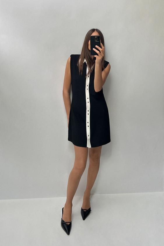 Este encantador vestido de crepé con manga sisa es una joya de la nueva colección de Zara. Con un diseño corto, cuello solapa y hombreras que añaden estructura, este vestido es una opción elegante y versátil para diversas ocasiones. Su cierre frontal con botones le otorga un toque sofisticado y su precio asequible de 29,95 EUR lo convierte en una verdadera ganga dentro del mercado de la moda.