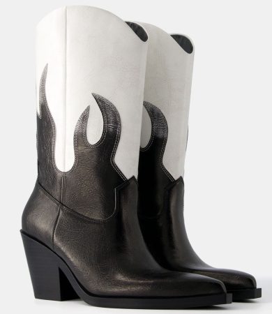 Pero si lo tuyo es el estilo más rebelde y atrevido, no puedes perderte las botas tacón cowboy con detalle de llamas de Bershka. Inspiradas en el espíritu del rock, estas botas cowboy tradicionales reciben un toque de sofisticación en blanco y negro que las hace realmente únicas. Con una puntera fina y un tacón de 8 cm, estas botas son ideales para quienes buscan un estilo con actitud. Además, su caña alta decorada con dibujos de llamas en color negro sobre un fondo blanco desgastado añade un toque de rebeldía a cualquier conjunto. Ya disponibles en las tiendas de Bershka en toda España, estas botas son la opción perfecta para quienes buscan destacar con un estilo único y atrevido esta primavera.