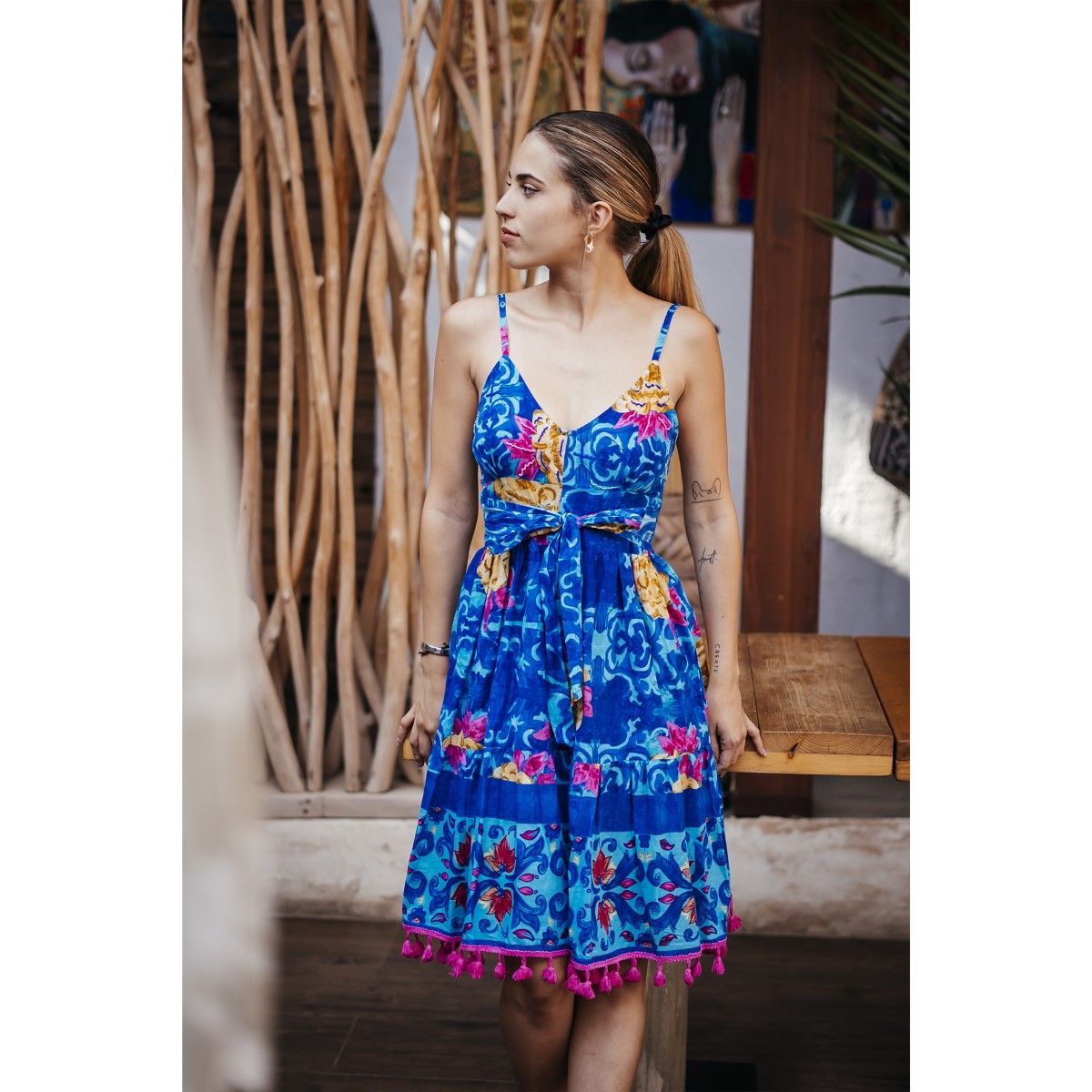 ¡Carrefour te trae una oportunidad imperdible para añadir estilo y frescura a tu guardarropa con el Vestido Corto Mujer Isla Bonita By Sigris, ahora disponible a un precio irresistible! Este encantador vestido playero presenta un ajuste holgado y una parte superior elástica que se adapta a tu figura, garantizando comodidad y estilo durante los cálidos días de verano. Con un diseño bohemio y divertidos pompones decorativos en la parte inferior, este vestido casual es la opción perfecta para lucir tanto en la playa como en eventos nocturnos.