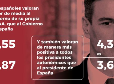 El estudio también indica que, en líneas generales, la mayoría de los españoles valoran de manera más positiva a todos los presidentes autonómicos que al presidente de España (4,34 vs 3,60). La excepción es Pere Aragonés, ya que el de Cataluña es el presidente autonómico con peor nota por parte de los españoles, con un 3,21 de media.