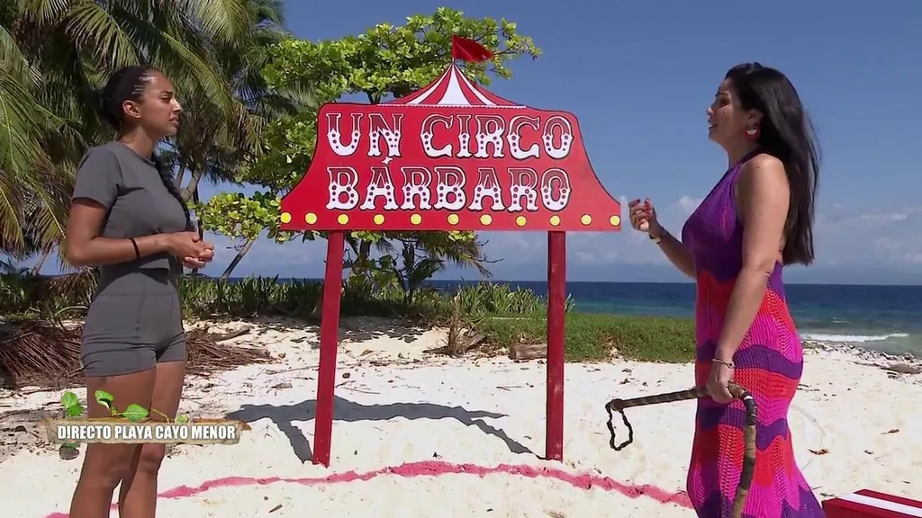 La pareja de Ángel Cristo, uno de los concursantes más comentados de esta edición de Supervivientes, se encontró con Marieta y Miri antes de reunirse con su gran amor. Con el letrero de ‘Un circo bárbaro’ de fondo y subida a un taburete con el látigo en mano como una domadora, no hubo formalidades y el choque fue inmediato desde el primer intercambio de palabras: «Hay algo que me llamó mucho la atención, que es que quieres que me deje y él se quede sin boda», recriminó Herminia.