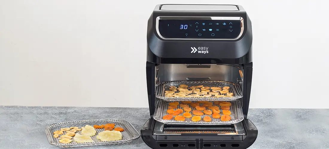 Las frutas deshidratadas, como ciruelas, tomates, plátanos, mangos, kiwis, frutillas, piñas, arándanos, uvas y otras variedades, ofrecen numerosos beneficios para la salud, contribuyen a la organización doméstica y facilitan la conservación de alimentos durante más tiempo. Además, si deshidratas tus alimentos podrás tener más espacio libre en tu despensa. Y si tienes hijos pequeños es una maravillosa manera de alentarlos a que coman más frutas y verduras, que sabemos que no es la comida que más les gusta. Y no te preocupes por las propiedades nutritivas, que seguirán estando en todas tus frutas y verduras: la freidora no las elimina.