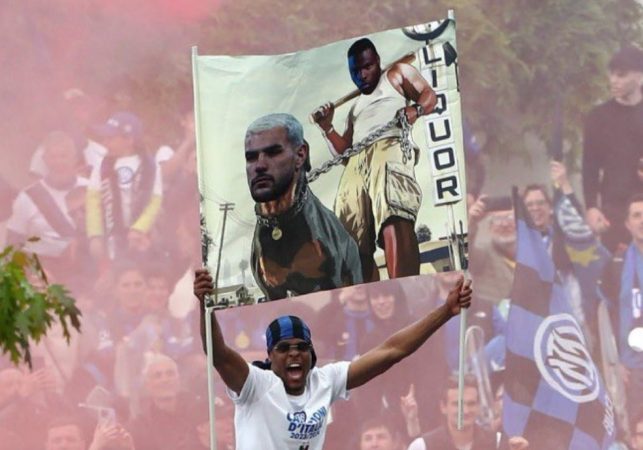 Con el trofeo en su bolsillo, los jugadores de Inter salieron a las calles de Milán para festejar y allí es donde se produjo este episodio que volvió a tener a Dumfries y Theo Hernández como protagonistas. Es que, en plena celebración del Scudetto conseguido por el conjunto nerazzurri, al futbolista neerlandés le acercaron una polémica pancarta en contra del defensor francés y, lejos de calmar las aguas y denegar la petición, Dumfries aceptó y lo meció eufóricamente.