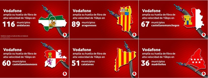 Señalan como relevante la ampliación de la red a 94 municipios de las provincias de Albacete, Alicante, Ávila, Badajoz, Barcelona, Cáceres, Cádiz, Cuenca, Girona, Guadalajara, Huelva, Huesca, Jaén, Lleida, Madrid, Málaga, Murcia, Palencia, Salamanca, Segovia, Tarragona, Teruel, Valencia, Valladolid, Zamora y Zaragoza, donde no existía cobertura de fibra, que en total suman más de 91.000 hogares con fibra que pueden contratar con Vodafone desde ya mismo.