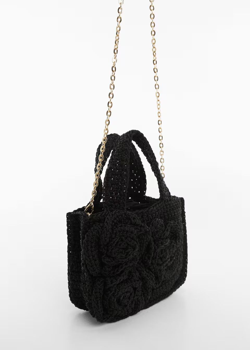 A pesar de su tamaño mini, este bolso no pasa desapercibido gracias a su diseño de crochet y las flores adornadas en la parte delantera. El cierre de cuerda añade un toque adicional de estilo y seguridad. Con un precio actual de 25,99 €, este bolso ofrece una excelente relación calidad-precio, convirtiéndolo en un accesorio imprescindible para complementar tus looks de verano. Aprovecha la oportunidad de añadir este mini bolso de Mango a tu colección y deslumbra con tu estilo único y elegante.
