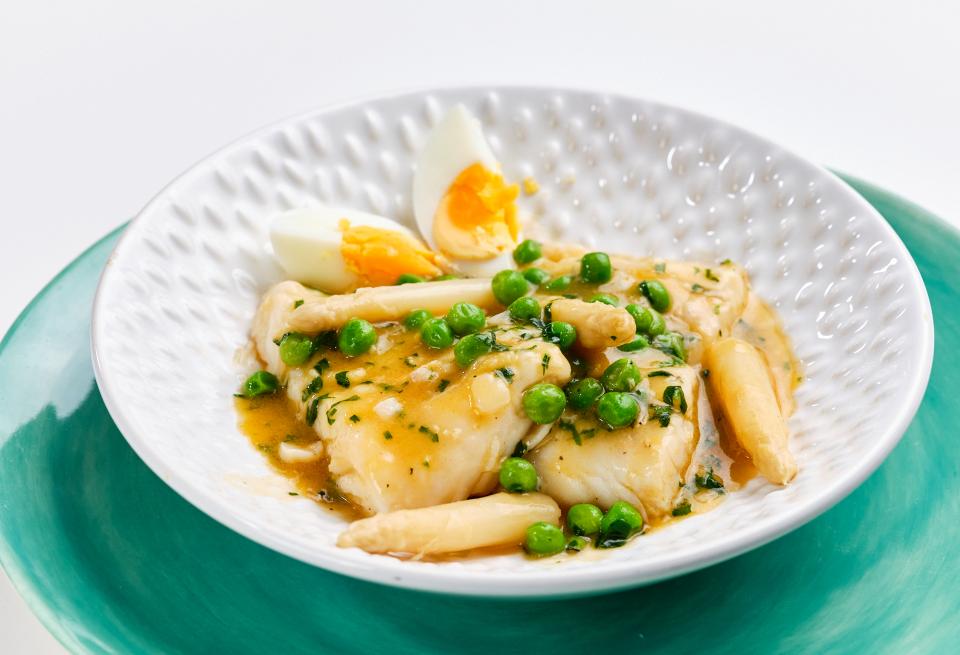 Si encuentras una merluza fresca en el mercado, esta receta es ideal para aprovecharla al máximo. Es rápida, sencilla y deliciosa. Una salsa cremosa y sabrosa se prepara en poco tiempo, donde se cuecen los lomos de merluza durante apenas 5 minutos. Los guisantes, espárragos y huevo cocido aportan un toque tradicional jugoso y exquisito. Solo necesitas comprar pan y preparar la mesa, ¡en 10 minutos la comida estará lista!