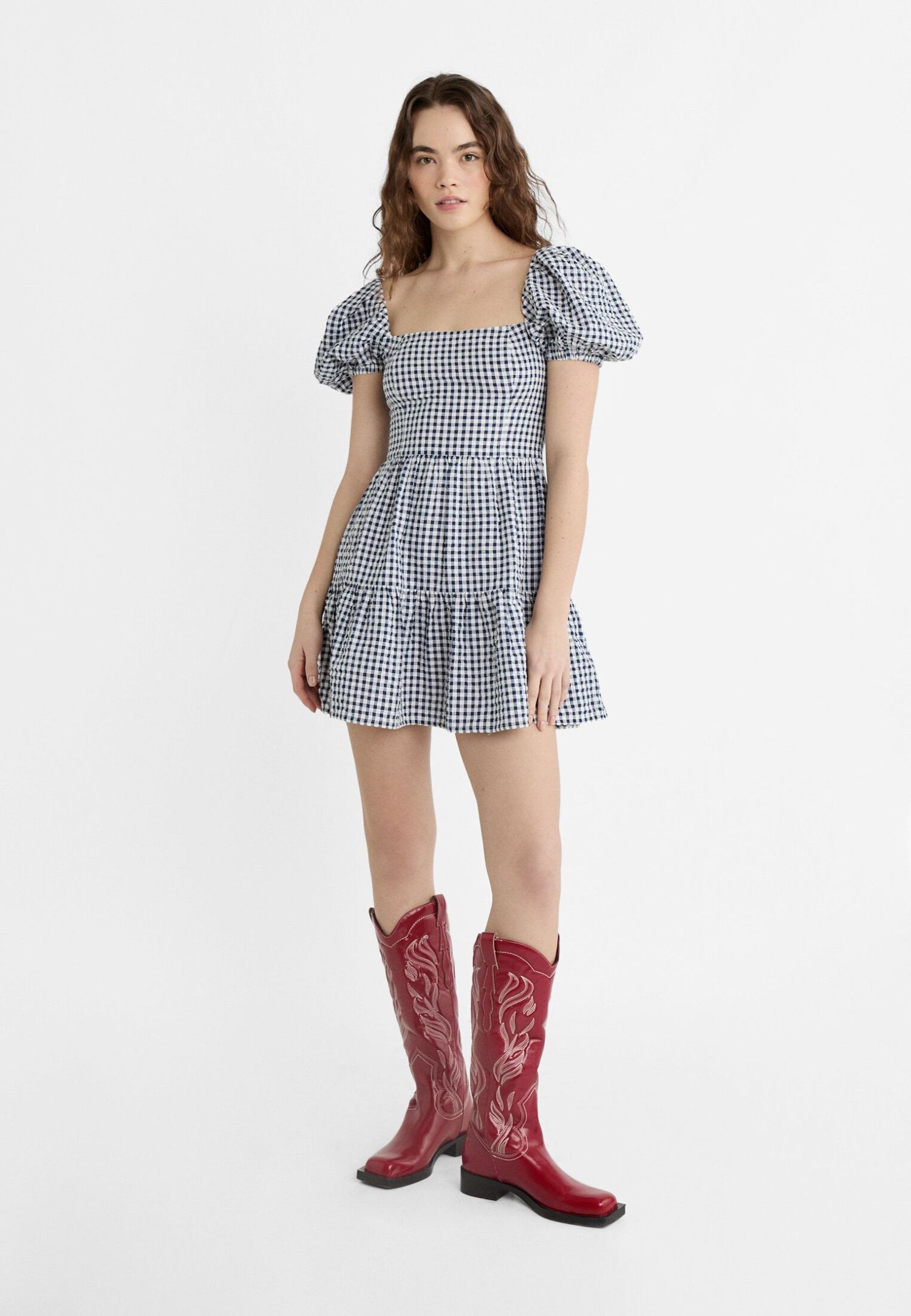 ¡Déjate cautivar por el encanto del vestido cuadro vichy con lazo en la espalda de Stradivarius! Este adorable vestido corto presenta un escote recto y mangas cortas abullonadas con un acabado elástico que realza tu silueta de manera elegante. Pero lo que realmente hace que esta prenda destaque es su detalle de espalda descubierta con una delicada lazada, añadiendo un toque de coquetería y estilo a tu look. Disponible en varios colores, incluyendo un encantador tono marino y un vibrante rojo, este vestido es una opción versátil que se adapta a cualquier ocasión.