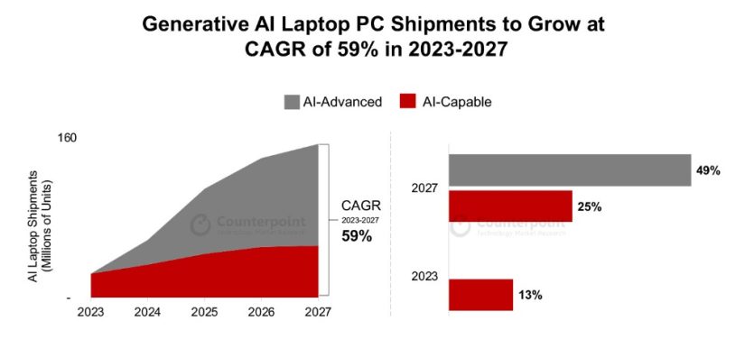 El director asociado de Counterpoint, Brandy Wang, afirma creer que «Intel y AMD también adoptarán la informática con IA generativa el próximo año para competir con soluciones relativamente eficientes de Qualcomm y Apple basadas en Arm en esta carrera de IA«. También prevé computadoras con GPU con alto nivel y capacidades premium para gamas más altas, que van a abarcar desde los actuales modelos grandes de lenguajes (LLM) procesados en los equipos (en el edge), hasta modelos grandes avanzados e incluso modelos de generación autónoma de gráficos para juegos (AI Gfx). Jugadores como NVIDIA buscarán ampliar sus capacidades y liderazgo en este segmento», ha asegurado.