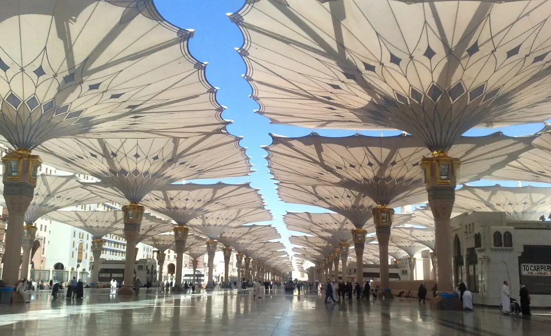 La planificación de estas sombrillas gigantes como proyecto arquitectónico de gran envergadura se entregó a SL-Rasch GmbH, con sede en Alemania. El Saudi Binladin Group estaba al tanto del uso de tela de PTFE fabricada por Sefar de Suiza y luego se descubrió que solo este tejido podía satisfacer las excepcionales exigencias climáticas, es que dicho tejido proporciona estabilidad UV, flexibilidad y resistencia al fuego. Así es que no cabe duda de que el innovador proyecto sirvió a la perfección para combatir las extremas temperaturas de Arabia Saudita.