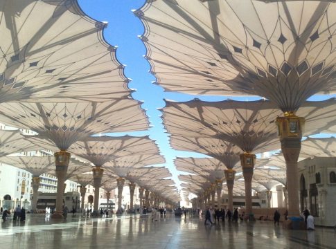 Ante las extremas temperaturas y con el objetivo de cubrir las necesidades climáticas del país, una empresa llamada SEFAR Architecture ideó un prototipo de sombrilla gigante cubierta con tejido PTFE. Miden nada menos que 25,5 metros de largo y de ancho y tienen una altura de 20 metros. Si juntamos 250 de ellas (las que hay ahora en la Plaza De Haram), se puede cubrir de sombra un área de 143.000 metros cuadrados, mayor que todo el suelo de la plaza.