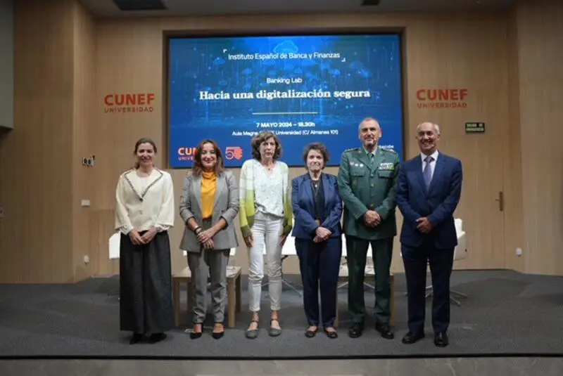En la jornada de ‘Banking Lab’, moderada por el director del IEBF, Manuel Balmaseda, también participaron el jefe de la Unidad de Coordinación de Ciberseguridad de la Guardia Civil, Juan Salom; la CISO Europa y Corporativo (directora de Seguridad de la Información) de Banco Santander, Idoia Mateo; y la directora general de la Asociación Española de Banca (AEB), María Abascal.