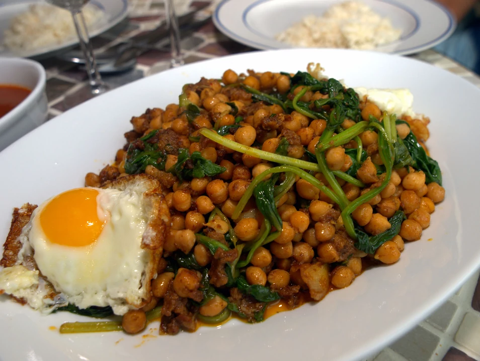Una vez que el huevo esté listo y todo esté bien cocido, sirve los garbanzos con espinacas y el huevo a la plancha en un plato. ¡Listo para disfrutar de tu nutritiva y sabrosa combinación de garbanzos, espinacas y huevo!