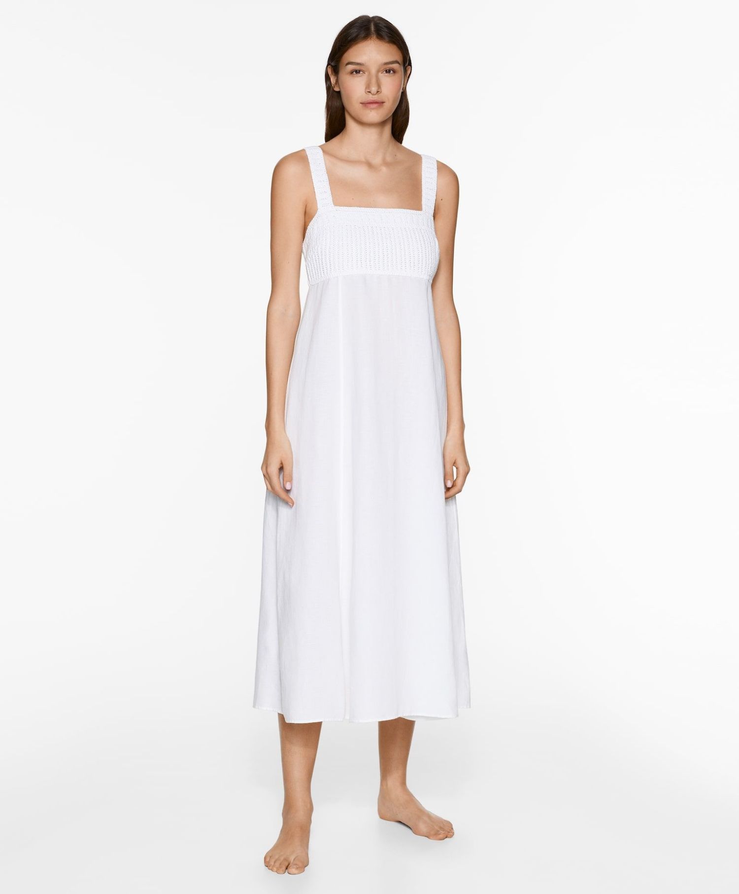 ¡Descubre el encanto del nuevo Vestido Largo de Tirantes con Crochet y Lino en Oysho por solo 49,99 €! Este elegante vestido en blanco es una elección perfecta para cualquier ocasión. Con su escote recto y los delicados detalles de crochet, esta prenda emana un estilo fresco y femenino. Los tirantes ajustables garantizan un ajuste cómodo y personalizado, mientras que el tejido confeccionado con lino proporciona una sensación de frescura y ligereza.