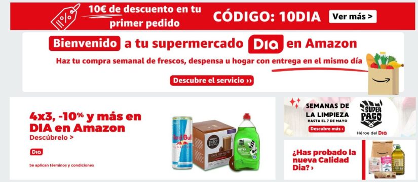 En España el sector de la distribución cuenta con un gran número de supermercados y tiendas de alimentación. La cadena de distribución Dia ha contado con la ayuda de Amazon para seguir creciendo y expandiendo su supermercado online que actualmente los consumidores pueden comprar no solo en la propia página web de Dia, también en la página web del gigante del comercio electrónico.
