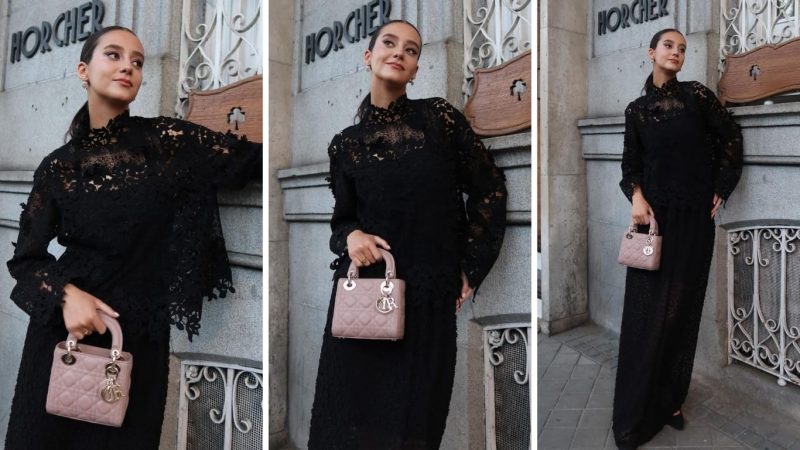 El exclusivo conjunto de Victoria Federica estaba compuesto por un top y una falda florales de guipur de algodón. El mismo era en color negro y la tela parecía de encaje. Le sumó un bolso de mano, ícono de Lady Dior, así lo nombró la firma Dior, ya que es un emblema para la firma porque era el favorito de Lady Di. El mismo, estaba compuesto en piel Cannage en color beis.