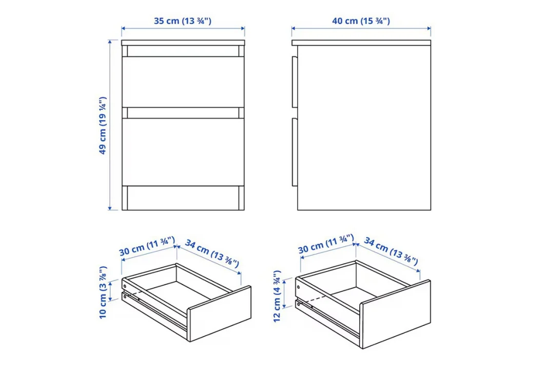 La primera y más evidente utilidad de la mesilla Kullen es su función tradicional como mesilla de noche. Con sus dos cajones, proporciona el almacenamiento necesario para tener a mano lo esencial antes de dormir o al despertar. El cajón superior es perfecto para guardar objetos pequeños como el móvil, los cargadores, las gafas o el reloj. El cajón inferior, más amplio, es ideal para almacenar libros, cuadernos o incluso ropa de cama adicional.
