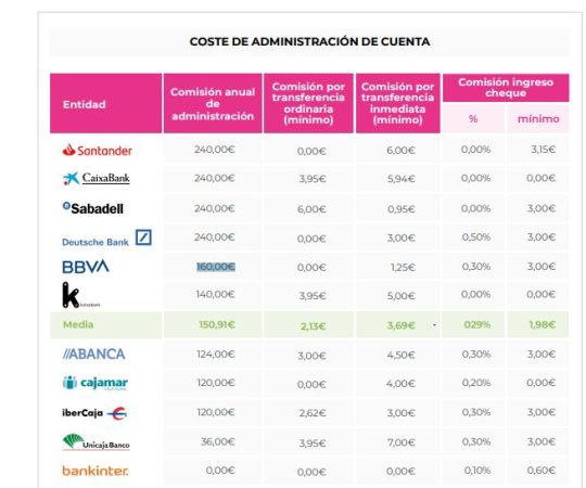 El cuarto punto clave es que «sigue existiendo una enorme disparidad entre cuatro entidades, Banco Santander, CaixaBank, Banco Sabadell y Deutsche Bank, que pueden cobrar hasta 240 euros al año por el mantenimiento de cuenta si no se cumplen sus requisitos máximos de vinculación y Bankinter, que sigue siendo la única entidad que por una cuenta que no es exclusivamente online no cobra comisiones en absoluto».