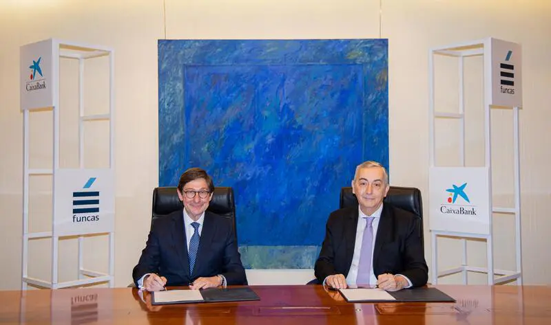 El presidente de CaixaBank, José Ignacio Goirigolzarri, y el director general de la Fundación de los Bancos y Cajas de CECA (Funcas), Carlos Ocaña, han firmado este martes la ampliación, por un año más, de la colaboración que ambas entidades mantienen para impulsar la cultura financiera en la sociedad española.