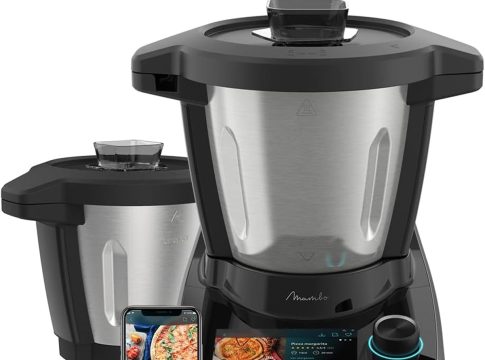 Este robot de cocina, que puedes encontrar en Amazon, contiene un total de 30 funciones entre las que se encuentran: picar, trocear, emulsionar, mezclar, escalfar, confitar, moler, recalentar, rallar, remover, cocinar al vapor, licuar, batir, montar, triturar, pulverizar, fermentar, sofreír y amasar. Con su modo SlowMambo, puede cocinar con la máxima precisión y a una presión grado a grado. También posee la función turbo y al baño maría. Además, con su cuchara MamboMix, lograrás unas texturas uniformes y podrás amasar sin cortar la masa, haciendo que sea homogénea. Se puede comprar aquí.