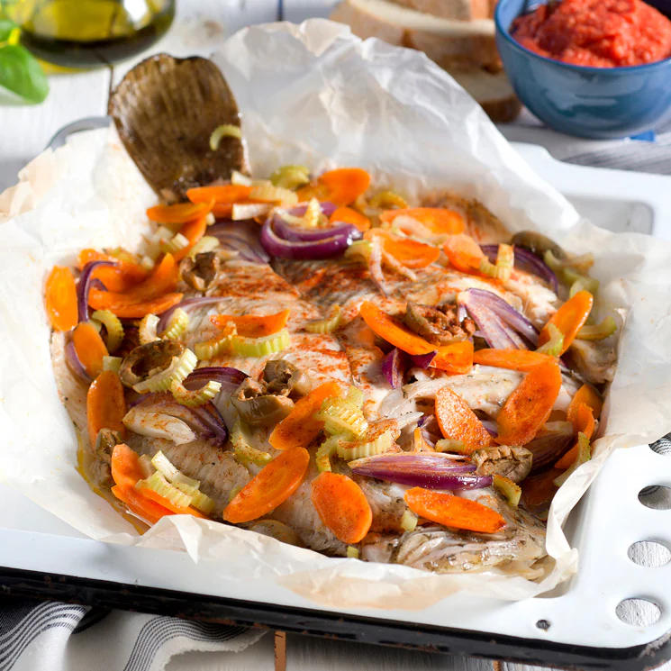 - Con Patatas: Añade rodajas finas de patata debajo del pescado para una guarnición integral que se cocina a la vez.