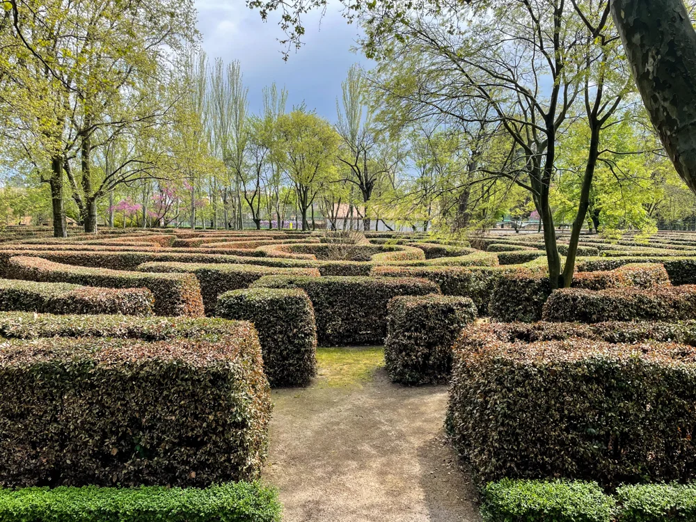 El Laberinto del Parque del Capricho, en la Alameda de Osuna (Madrid), es uno de los tesoros ocultos más fascinantes. Rodeado de laureles, este laberinto revela su misteriosa estructura a medida que se avanza por sus casi 400 metros de pasillos.