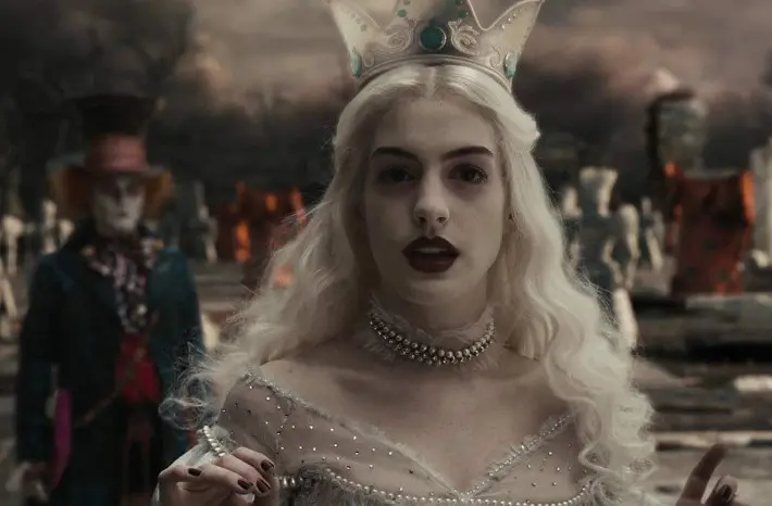 Es que en el momento en que Hathaway se enteró de que Tim Burton iba a dirigir este filme, la actriz se reunió con él para negociar su participación en la película, en la cual finalmente acabó interpretando a la Reina Blanca, la legítima soberana del Submundo y la hermana de la Reina Roja.