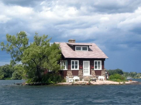 La Isla Just Room Enough, está perfectamente descrita por su nombre, puesto que apenas tiene unos 300 metros cuadrados de superficie, en los que no queda espacio para nada más que lo que ya hay allí. Lo que empezó siendo una forma de que la familia viviera alejada y en tranquilidad, paradójicamente se volvió en un sitio tan particular que atrae a cientos de turistas que pasan por su lado en lanchas o botes para poder admirar la vivienda. Por su increíble particularidad, este territorio se llevó el Récord Guinness por ser la isla habitada más pequeña del mundo.