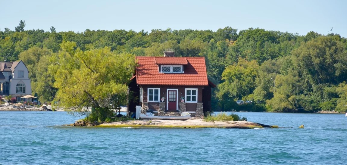 En detalle, Just Room Enough se encuentra en el río San Lorenzo, entre la isla Heart y la isla Imperial, cerca de la frontera entre Canadá y Estados Unidos. La isla pertenece a Alexandria Bay, una aldea que forma parte de la ciudad de Alexandria, en el condado de Jefferson, Nueva York. No cabe duda de que, como poco, habitar en este lugar debe de ser muy curioso, más aún si disfrutas de la calma y la soledad. Y a ti, ¿te gustaría vivir en la Isla Just Room Enough?
