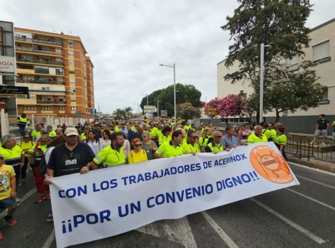 La plantilla de la factoría de Acerinox en Los Barrios (Cádiz) ha celebrado una manifestación por las calles de Algeciras, marcando 117 días de huelga por la falta de acuerdo en la negociación del convenio colectivo. Los trabajadores reclaman a la dirección de la empresa que «recapacite», acusándola de «no querer negociar» y de recurrir a «amenazas» de despido.