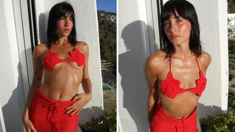 El rojo es uno de los colores que siempre llama la atención. Sea en la prenda que sea o mismo el complemento, está para robar miradas y captar la atención de todos. Lo cierto es que Aitana apostó a un traje de baño tejido. La parte superior con forma de flor era casi diminutos, solo tapaba el busto, pero no de manera completa. Esto lo completo con una falda del mismo material ajustada al cuerpo.