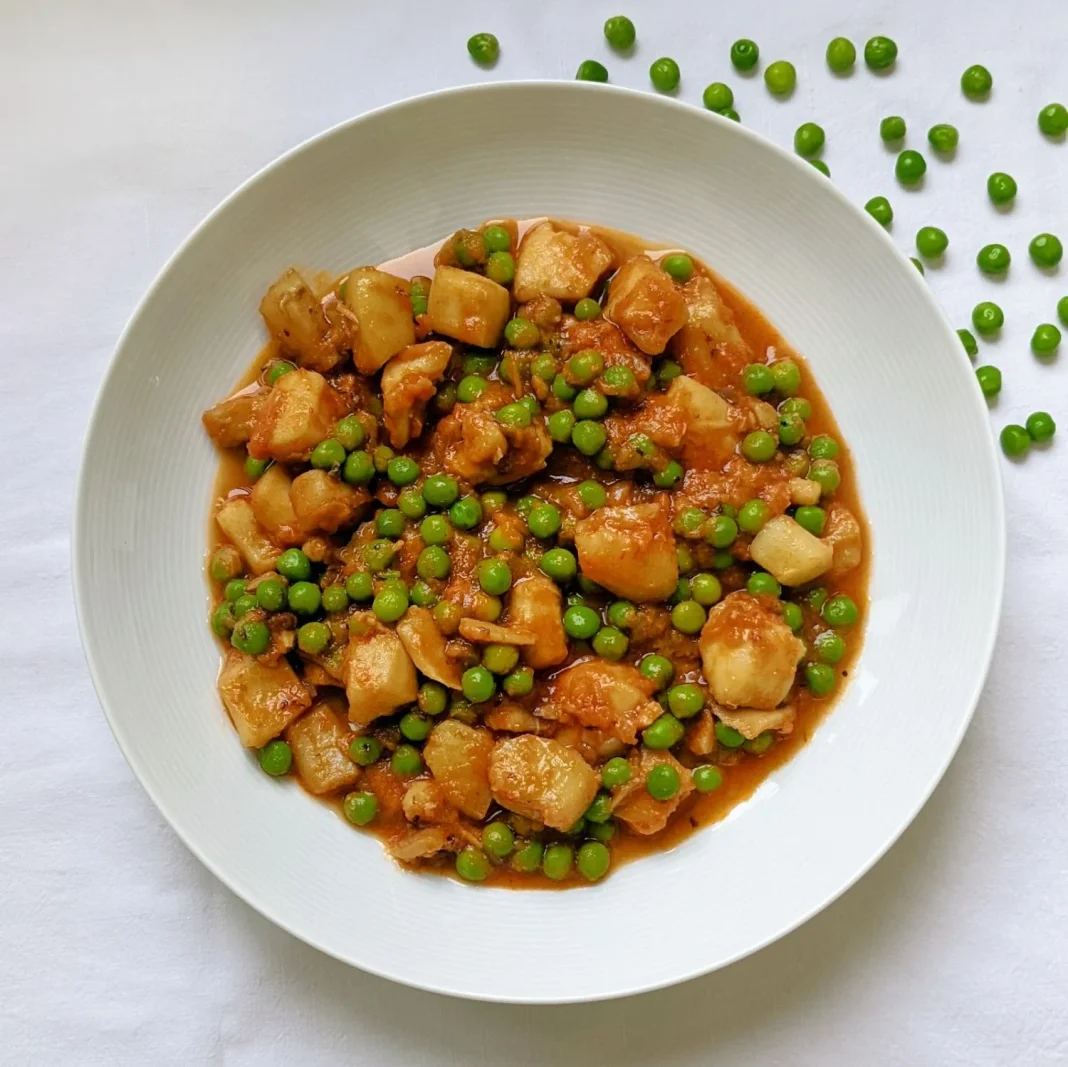 - Añade los guisantes al guiso y cocina durante unos 5-10 minutos más, hasta que estén tiernos.
