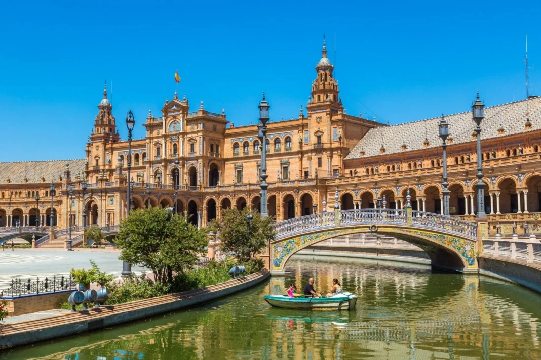 Su forma representa un abrazo: La Plaza de España de Sevilla tiene una curiosa forma semielíptica, algo que resulta sorprendente y extraño para muchos, pero tiene una explicación. El arquitecto responsable del proyecto, Aníbal González, la diseñó de esta manera porque buscaba simbolizar el abrazo entre la ciudad y las que fueron colonias españolas en el pasado, ya que fue construida con motivo de la Exposición Iberoamericana de 1929. Además, la plaza mira hacia el Guadalquivir, la puerta de entrada al nuevo mundo.