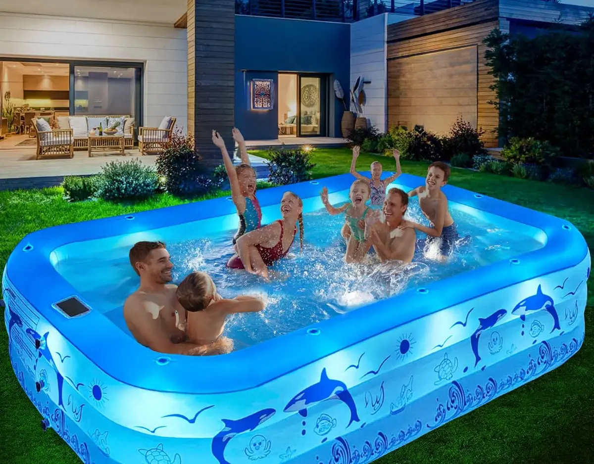 PISCINA RECTANGULAR EN VINILO RESISTENTE CON ILUMINACIÓN, EN AMAZON
