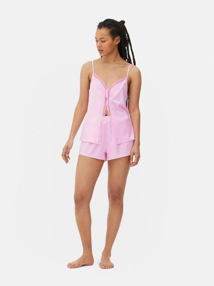 La camiseta de tirantes y pantalones cortos de satén de Primark te permite presumir de un look impecable incluso al dormir. Este bonito conjunto incluye una camiseta con tirantes finos y un escote de pico, que añade un toque de elegancia y feminidad. Los pantalones cortos complementan el estilo, proporcionando comodidad y frescura para las noches cálidas.