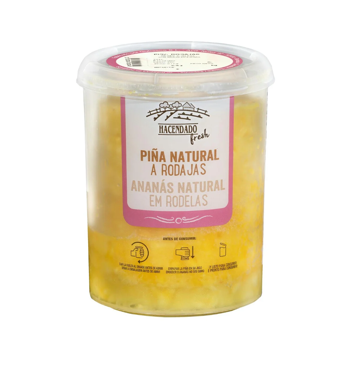 La piña en rodajas de Mercadona es un auténtico deleite para los amantes de las frutas tropicales. Este producto se presenta en un formato práctico y listo para consumir, manteniendo toda la frescura y el sabor natural de la piña. Ideal para incorporar en ensaladas, postres o simplemente como un snack saludable, estas rodajas son jugosas y dulces, perfectas para disfrutar en cualquier momento del día.