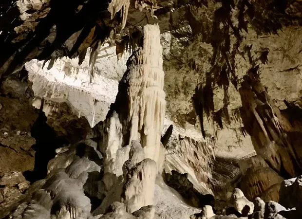 La parada en la cueva de Postojna también se incluye en sus rutas. Descubierta en el siglo XIII tras millones de años de lenta formación, esta cueva es una concreción calcárea que crece apenas un milímetro por década. Sus formaciones más impresionantes, conocidas como los Gigantes, alcanzan hasta 16 metros de altura. Entre las estalactitas más destacadas se encuentran algunas que parecen la Torre de Pisa y figuras de animales como un pollo. Además, destaca la gigantesca estalagmita blanca de cinco metros de altura conocida como Brillante.