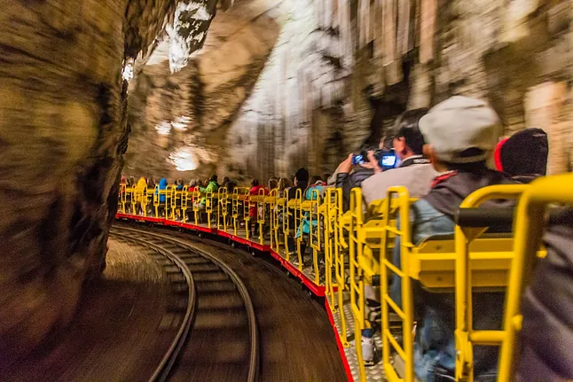 Para hacerse una idea, Eslovenia en el centro de Europa, esconde más de 13,000 cuevas en su territorio, pero ninguna tan monumental como la cueva de Postojna. Esta cueva ha sido incluida en el Libro Guinness de los Récords debido a sus 24 kilómetros de longitud, de los cuales solo cinco están abiertos al público. Los visitantes pueden recorrer una parte de 3.7 kilómetros en un tren único con dos vías, que fue inaugurado en 1872, y luego 1.3 kilómetros a pie, explorando formaciones geológicas únicas y sumergiéndose en la fascinante historia natural de Eslovenia.