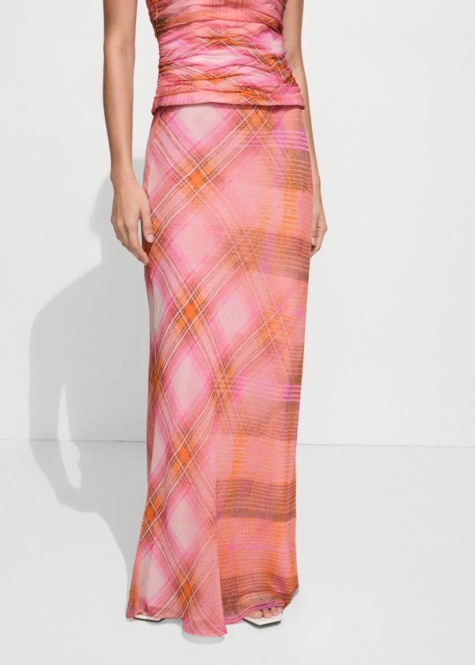 Las faldas largas están de moda este verano, y Mango no se ha quedado atrás. Su diseño de cuadros en color rosa y naranja es un éxito asegurado. Esta prenda, que cuesta 39,99 euros, es perfecta para añadir un toque de color y estilo a tu vestuario de verano.