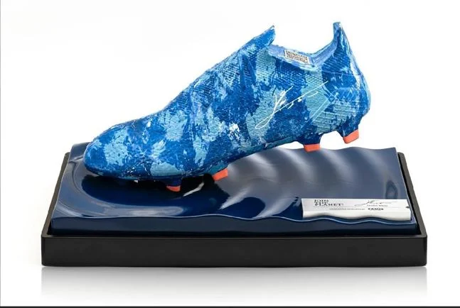 La bota especialmente elaborada, resultado de la colaboración creativa entre ‘Joint the Planet’ y Messi, está fabricada con materiales reciclados