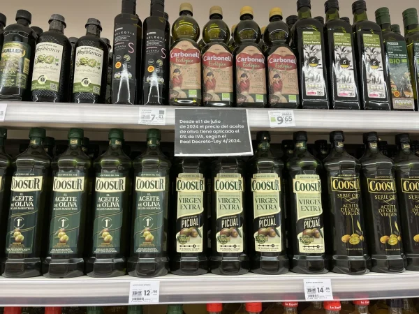 En este contexto, el 1 de julio, entró en vigor una de las medidas más destacadas para el ahorro de las familias en cuanto a este producto básico. Sin ir más lejos, el Gobierno ha aplicado la rebaja del IVA del aceite de oliva al 0% hasta el 30 de septiembre, y posteriormente al 2% entre octubre y diciembre. La mayoría de supermercados ya está colgando en sus cajas un cartel con la nueva medida del Gobierno.