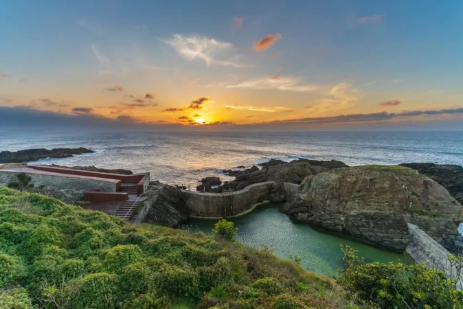 Recorriendo el paseo verde sobre los acantilados hacia el mirador de Os Cañois, uno puede imaginar la ancha estela que dejaban en el mar los antiguos balleneros que partían de su puerto. Justo antes de llegar al mirador, se encuentra la piscina de agua salada de Tapia de Casariego, una oasis bienvenido para los visitantes ante la bravura del Cantábrico y un recordatorio de la historia marítima que define esta costa de Asturias.