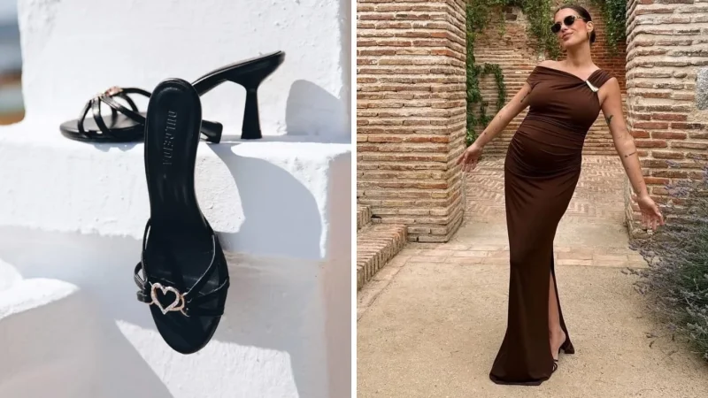 Acaparando la mirada de todos, Dulceida no pasó desaparecido en la boda de la modelo y el futbolista. Acompañada de Alba Paul, la influencer llevó un vestido elegante, llamativo y al ismo tiempo que combina con todo tipo de calzado. Pero antes de hablar de la prenda en cuestión, hay que destallar los zapatos que llevó. De taco bajo, en color negro y con tiras finitas que sujetaban la parte de adelante de su pie.