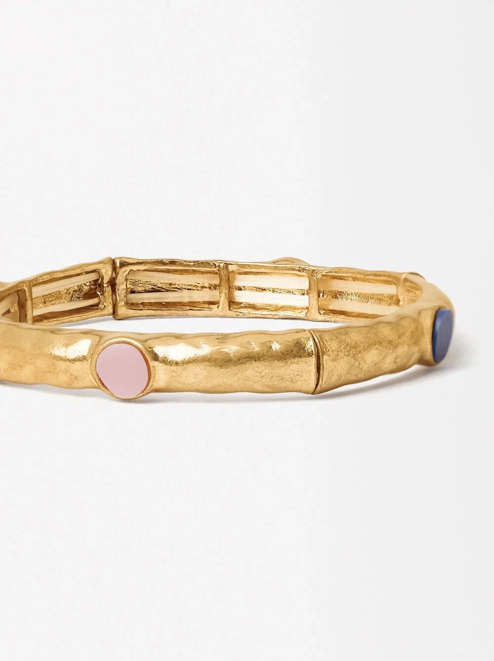 Aprovechar esta oferta de Parfois no solo es una oportunidad para adquirir un accesorio de moda a un precio asequible, sino también invertir en una pieza que perdurará en tu colección por su calidad y diseño intemporal. Ideal para el entretiempo y preparándote para el verano, esta pulsera elástica dorada irregular es una elección versátil y duradera que complementará tu estilo con elegancia y sofisticación.