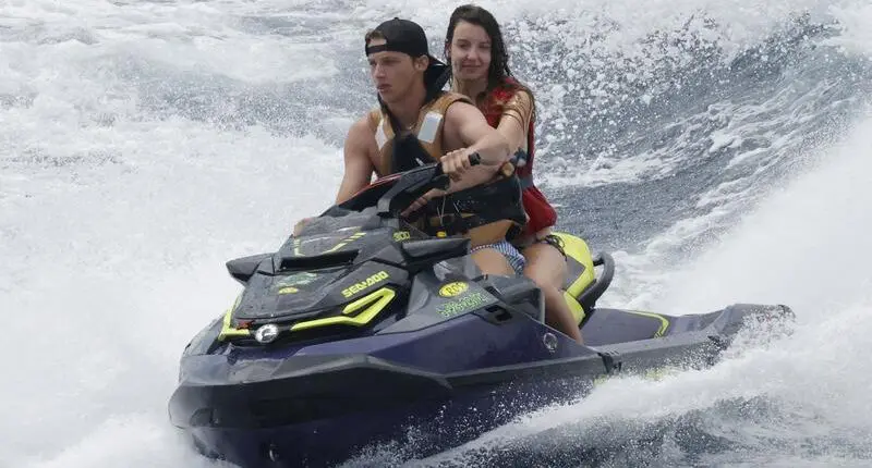 Presumiendo de su espectacular figura con un bikini estampado sencillo, Carmen se mostró relajada y divertida. Además de responder a las felicitaciones de cumpleaños a través de su móvil, se atrevió a manejar una moto acuática en compañía de un amigo, demostrando una gran complicidad con él.