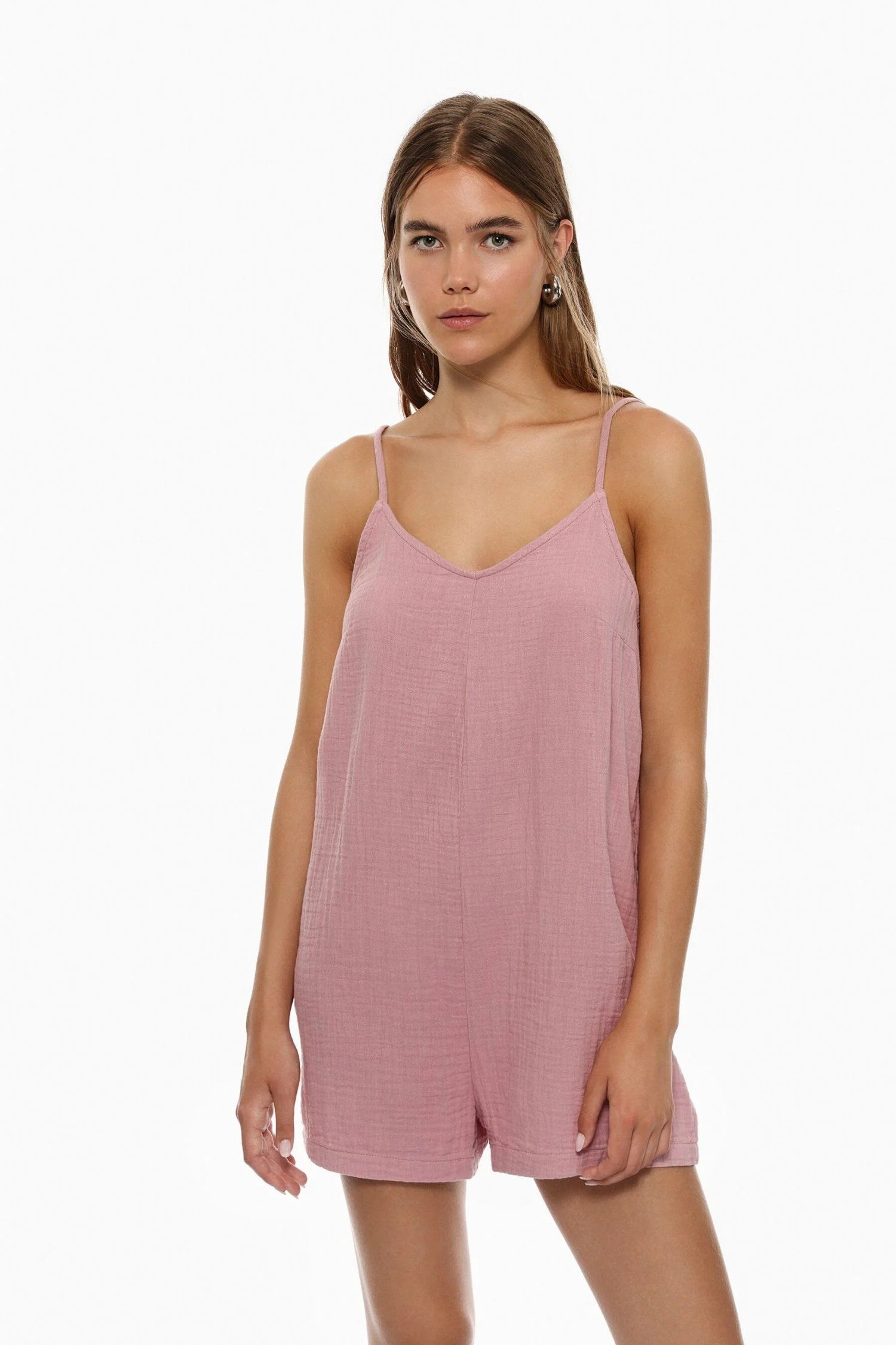 El mono corto de textura de Lefties, disponible por solo 9,99 €, es una prenda que combina estilo y confort de manera excepcional. Con tirantes ajustables y un cuello en forma de pico, este modelo destaca por su corte holgado, que ofrece una sensación de frescura y libertad de movimiento. Confeccionado en un tejido 100% algodón, garantiza una suavidad y transpirabilidad ideales para los días más cálidos. Este mono no solo es perfecto para lucir durante el verano, sino también como una opción versátil para el entretiempo, adaptándose fácilmente a diferentes estilos y ocasiones.