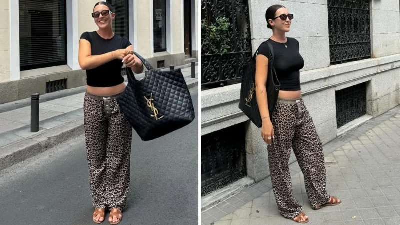 El primero es un conjunto de leopardo. Top a la altura de la cintura y el pantalón suelto, tiro bajo de 13 euros. La segunda opción y el que más se acerca al de Alba Díaz, es un jean de leopardo tiro bajo con bolsillos al frente y con ambas piernas holgadas. Ambas prendas, tiene un costo de 13 euros y son de las más llevadas en toda la tienda de Zara. Este verano es indispensable esta moda en tu closet.